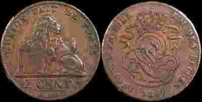 Belgia, 2 Centimes 1847