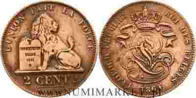 Belgia, 2 centimy, 1864 rok