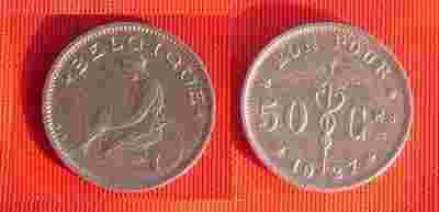 BELGIA -50 CENTIMES 1927 ROK. (182.)