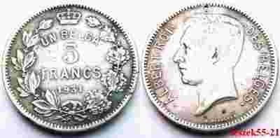 BELGIA 5 FRANCS 1931 BELGES - ALBERT RZADSZA