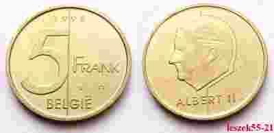 BELGIA 5 FRANK 1998 BELGIE ŁADNA