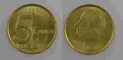 Belgia 5 Frank 1998 rok QUE od 1zł i BCM