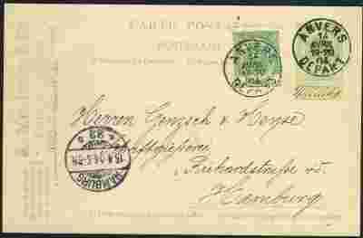 Belgia Cp +zn Anvers 1904 odb Hamburg nad Meulepas