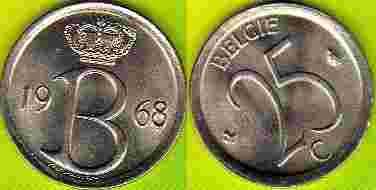Belgie 25 Centimes 1968 r.