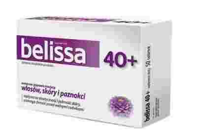 Belissa 40+ suplement diety to pierwszy preparat stworzony z myślą o kobietach dojrzałych. Dzięki zawartości skrzypu polnego wzmacnia i poprawia kondycję włosów, skóry i paznokci. Dodatkowo zawiera L-cysteinę, L-metioninę, koenzym Q10 oraz kolagen [hydrolizat białek kolagenowych], który pomaga zachować jędrność i elastyczność skóry.