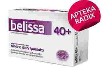To pierwszy preparat stworzony z myślą o kobietach dojrzałych. W procesie starzenia następuje degradacja włókien kolagenowych, czego następstwem jest powstawanie zmarszczek. Belissa 40+ uzupełnia codzienną dietę w koenzym Q10, kolagen oraz L-cysteinę i L-metioninę. Dodatkowo dzięki zawartości skrzypu polnego wzmacnia i poprawia kondycję włosów, skóry i paznokci. Biotyna i niacyna pomagają zachować zdrowy wygląd skóry.