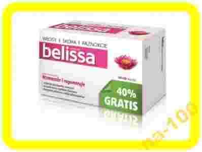 BELISSA 70 TABL. SKÓRA, WŁOSY, PAZNOKCIE Wskazania Belissa to suplement diety dla kobiet, które chcą wzmocnić włosy, skórę i paznokcie. Preparat zawiera największą* dawkę skrzypu polnego, który poprawia kondycję skóry, wspomagając jednocześnie wzrost włosów i paznokci. Suplement diety został wzbogacony dodatkowo o L-cysteinę - aminokwas, który występuje naturalnie jako element strukturalny białek skóry i włosów. Ponadto zawarty w produkcie komplet witamin i mikroelementów pomaga zachować zdrową skórę. belissa suplement diety to bogata kompozycja składników, których systematyczne stosowanie, poprawia kondycję włosów i paznokci. Działanie składników produktu • wzmacnia i poprawia kondycję włosów, skóry i paznokci • największa dawka skrzypu* • dodatkowo L-cysteina i biotyna • komplet witamin i mikroelementów * spośród wszystkich produktów w linii belissa Przeciwskazania Uczulenie na którykolwiek ze składników produktu. Nie należy stosować łącznie z innymi preparatami witaminy A. W okresie ciąży i karmienia piersią przed zastosowaniem należy skonsultować się z lekarzem. Skład Składnik Zawartość w 1 tabletce % zalecanego dziennego spożycia Ziele skrzypu polnego** 1440 mg - L-cysteina 30 mg - Witamina A 800 µg ekwiwalentu retinolu 100% Tiamina (witamina B1) 0,8 mg 73% Ryboflawina (witamina B2) 1 mg 71% Witamina B6 1,1 mg 79% Witamina B12 0,6 µg 24% Witamina C 30 mg 38% Witamina E 5 mg ekwiwalentu alfa-tokoferolu 42% Niacyna (witamina PP) 8,9 mg ekwiwalentu niacyny 56% Biotyna 77 µg 154% Kwas pantotenowy 5,1 mg 85% Kwas foliowy 200 µg 100% Cynk 7,3 mg 73% Jod 73 µg 49% Żelazo 6,9 mg 49% β-karoten 0,9 mg 19%*** ** w postaci wyciągu w ilości 240 mg ***odpowiada 150 µg octanu retinylu, co stanowi 19% zalecanego dziennego spożycia dla witaminy A.