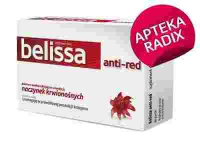 Belissa anti-red to preparat, którego składniki jednocześnie wzmacniają włosy, skórę i paznokcie oraz pomagają w prawidłowej produkcji kolagenu w celu zapewnienia prawidłowego funkcjonowania naczyń krwionośnych. Suplement diety belissa anti-red dostarcza organizmowi składników, wspomagających prawidłowe funkcjonowanie skóry. Dodatkowo preparat zawiera składniki o właściwościach antyoksydacyjnych, które pomagają w ochronie komórek przed stresem oksydacyjnym (wolnymi rodnikami).