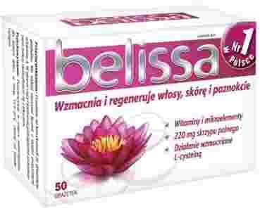 Belissa to preparat wielowitaminowy z dodatkiem mikroelementów, aminokwasów oraz składników roślinnych. Zawarte w nim związki dostarczają organizmowi substancji odżywczych, niezbędnych do prawidłowego funkcjonowania, regeneracji i pielęgnacji włosów, paznokci i skóry. Systematyczne stosowanie preparatu wzmacnia włosy i paznokcie oraz regeneruje skórę.
