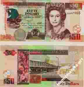 Belize 50 Dolarów P-70 2010 UNC Ptaki Elżbieta II