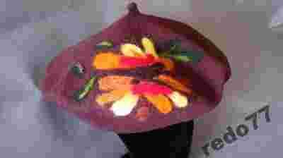 Beret filcowy zdobiony czesanką