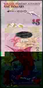 Bermudy - 5 dolarów 2009 P58 UNC nowa seria * ryba