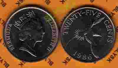 BERMUDY /KM-47/ 25 CENTS 1986 Ptak Tropikalny RRR