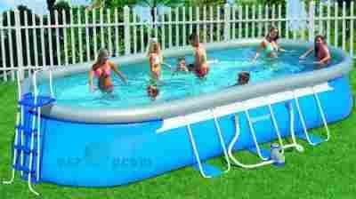 Basen owalny BESTWAY 56125 o wymiarach 732 x 366 x 122 cm zbudowany jest z trwałego 3-warstwowego winylu oraz podłogi odpornej na rozdarcie. Wszystkie niezbędne akcesoria znajdują się w komplecie. Pojemność basenu wynosi ok. 23339 litrów. Pompa o wydajności 5678 litrów/godzinę pozwala zachować wodę w najwyższej czystości - jest dostarczana wraz z wkładem filtrującym. Dwustronna drabinka zawarta w komplecie ułatwia wejście oraz wyjście z basenu. Pokrywa na basen chroni powierzchnię wody przed opadem liści i innych zanieczyszczeń. Podłoga basenu zabezpiecza przed uszkodzeniem mechanicznym od strony gruntu. W przypadku, kiedy na powierzchni wody znajdą się luźne przedmioty (liście, papiery, itp.), skimmer je skutecznie wyłowi. Zestaw czyszczący podłączony do skimmera pozwala na łatwą pielegnację basenu, a odkurzacz basenowy ułatwia utrzymanie dna w czystości. Zestaw do siatkówki urozmaica pobyt w basenie kilku osobom. Instrukcja na płycie DVD gwarantuje, że po 30 minutach rozstawiania basen będzie już gotowy do napełnienia wodą.