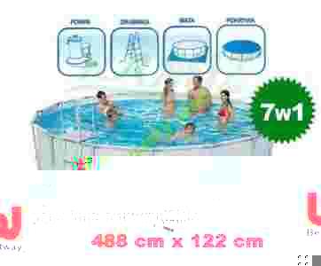 Mamy niezwykłą przyjemność zaprezentować Państwu nowy, oryginalny basen stelażowy 16FT (488x122 cm) marki BESTWAY (56266) + 7 gratisów.