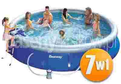 W zestawie znajduje się basen rozporowy Bestway o wymiarach 457 cm x 91. Pomieści on aż 10179 litrów wody! Dmuchany kołnierz zapewnia mu stabilność, ale stanowi także wygodne oparcie. Basen wykonano z mocnego, trójwarstwowego PVC, więc masz pewność, że to zakup na lata.