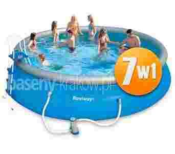 Ten wyjątkowy zbiornik wykonany z trwałego, trójwarstwowego PVC, pomieści kilka dorosłych osób. Spraw sobie i swoim bliskim prezent i kup zestaw Bestway 7 w 1. To połączenie komfortu z troską o czystą wodę.