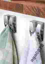 Nie trzeba ich przykręcać,dzięki warstwie samoprzylepnej mocno trzymają się podłoża. Wygodnie wsuniesz w nie ściereczki.Trwałe, wykonane ze stali nierdzewnej. 7 x 5 x 2,5 cm