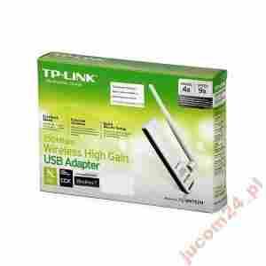 NOWA BEZPRZEWODOWA KARTA SIECIOWA USB TP-LINK TL-WN722N WiFi 150MB/S ANTENA Bezprzewodowa karta sieciowa USB dużego zasięgu TL-WN722N umożliwia podłączenie komputera lub laptopa do sieci bezprzewodowej zapewniając dostęp do szybkiego połączenia internetowego. Dzięki technologii AlignTM 1-stream opartej o standard 802.11n, karta TL-WN722N zapewnia lepszy sygnał bezprzewodowy w porównaniu do urządzeń wykorzystujących technologię 802.11g. Co istotne, dzięki dołączalnej antenie o zysku 4 dBi, zwiększony zostaje zasięg i siła transmisji danych. Korzystanie z Internetu (np. transfer plików, granie w sieci oraz transmisja wideo) jest dużo wygodniejsze. Dołączalna antena o zysku 4 dBi zapewnia znakomitą wydajności pracy na dużych odległościach oraz w trudnych warunkach. Urządzenie odbiera sygnał bezprzewodowy przechodzący nawet przez dwa piętra budynku.
