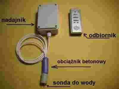 Bezprzewodowy sygnalizator poziomu wody do szamba, działający na zasadzie radiowo przesyłanego sygnału poziomu zanurzenia sondy w wodzie, który odebrany przez odbiornik, sygnalizuje optycznie (migająca mocna czerwona dioda LED), lub dźwiękowo (do wyboru klika przyjemnych dźwięków), jak również optycznie i dźwiękowo o nadmiernej ilości wody w zbiorniku fekalnym (szambie).