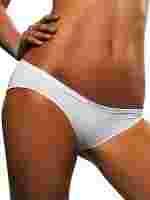 wykonane z delikatnej oddychającej bawełny, obniżona talia, mocno wycięte na biodrach, gładkie, pozbawione ozdób, od góry wykończone delikatnym ściągaczem