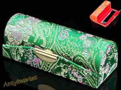 • Opis: PUDEŁKO SATYNOWE na szminkę i inne drobiazgi. Pudełko jest perfekcyjnie wykonane - posiada zatrzask oraz wewnątrz lusterko widoczne na małym zdjęciu, wnętrze w kolorze czerwonym. Zewnętrzne wzory różnokolorowe. Każde pudełko różni się od siebie wzorem.