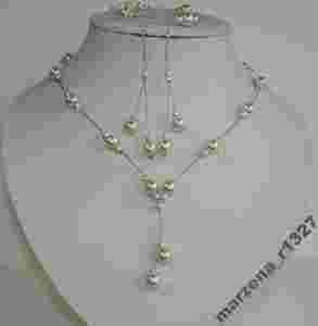 Komplet wykonany jest z posrebrzanych elementów, linki jubilerskiej i szklanych pereł.