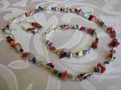 Biżuteria srebro naszyjnik agat turkus koral.