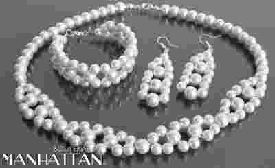 BIŻUTERIA WIECZOROWA KOMPLET PLECIONY PERŁY BIAŁE