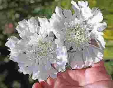 Biała , delikatna SCABIOSA na rabaty