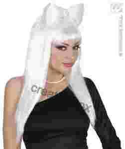 BIAŁA Peruka GAGA + kokarda + ozdoba