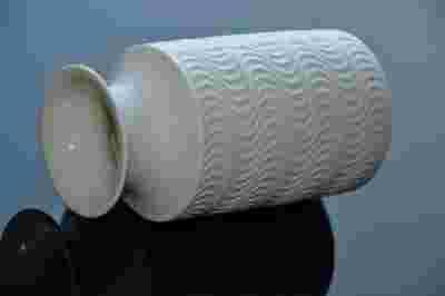 Wykonany z doskonałej jakości białej porcelany o ciekawym kształcie.