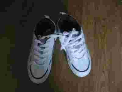 białe adidasy z granatowymi wstawkami