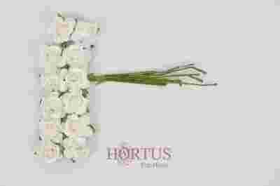 Opakowanie zawiera 144 różyczek (12 pęczków po 12 różyczek) - z kwiatem o średnicy około 1,5 cm. Starannie wykonane z papieru. Nóżka różyczki o długości około 6 cm wykonana jest z zielonego papieru u druciku.