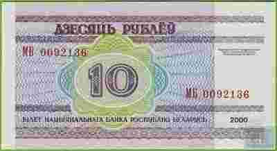 BIAŁORUŚ 10 Rubli 2000 P23 MB UNC