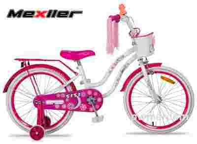 Stan: Nowy Rozmiar koła w calach: 20" Marka: Mexller Wiek dziecka: 4 lata + Rama: Stalowa Kolor: Biały, Różowy, Fioletowy Wyposażenie: Bagażnik, Kółka boczne, Koszyk, Błotniki, Osłona łańcucha