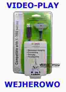 Kabel Play & Charge do pada Xbox 360 umożliwiający jednoczesną grę i ładowanie baterii.