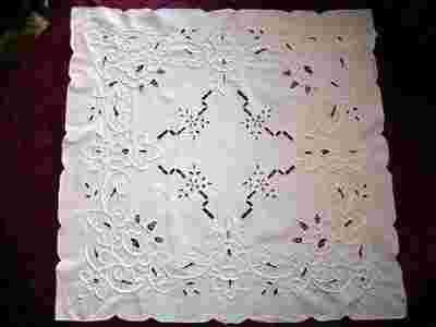 Biały obrus z haftem richelieu