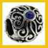 W środku dziurka do nawleczenia na bransoletkę. Kulka z zawijasami i z dwoma niebieskimi cyrkoniami.