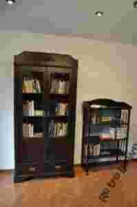 Mebel posiada podwójne drzwi przeszklone w 3/4 ich wysokości, w dolnej części znajduje się płycina. Wewnątrz biblioteki znajdują się trzy półki. W dolnej części znajduje się pojemna szuflada.