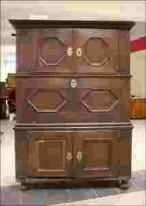 Biblioteczka- sekretarzyk z przełomu XVIII i XIX wieku. Mebel z nieznanym rodowodem, chociaż wydaje się nam że kraj, w którym powstał do Niemcy. Duczęściowy - dolna z półką, górna wyglądem przypominająca sekretarzyk ale też niewielką bibiloteczkę. Plecy kołkowane, okucia masywne i ciężkie. Boki obydwu części z dużymi uchwytami, które jeden z poprzednich właścicieli pomalował na srebrno - w kolorze czarnym (oryginalnie) mebel prezentowałby się o wiele lepiej.