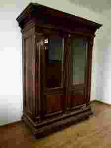 Mamy zaszczyt zaprezentować Państwu piękną bibliotekę.Mebel powstał w XIX-tym wieku i wykonany został w stylu eklektycznym,do jego budowy natomiast użyto drewna orzechowego,stan zachowania oceniamy jako dobry,do renowacji.