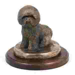 Bichon Frise statuetka z brązu na drewnie Art Dog