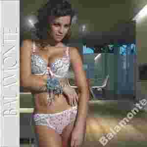 haftem na tiulu, który połączono z elementami gipiurowymi. Dzięki temu piersi są naturalnie uniesione i zbliżone do siebie, a niski mostek zachęca do założenia kreacji z bardzo głębokim dekoltem. Pas biustonosza wykonano z szyfonu wzmocnionego miękkimi, bocznymi fiszbinami. Odpinane ramiączka są regulowane na całej długości. Subtelne figi wykonano w całości z szyfonu z satynowymi kokardkami.
