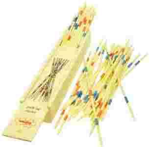 Tradycyjna gra drewniana pomagająca w ćwiczeniu koncentracji, uwagi i sprawności manualnej. Potrzeba przecież nie lada skupienia, żeby wyciągnąć jeden patyczek nie poruszając przy tym innych. Bieki poznaczone różnymi kolorami, dzięcki czemu jedne są bardziej wartościowe od innych. Każdy wzór to inna liczba zdobytych punktów.