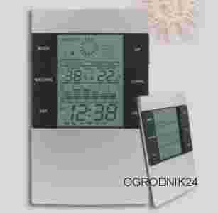 Funkcje: Temperatura wewnętrzna (°F lub °C) Względna wilgotność wewnętrzna Zegar z alarmem Kalendarz Pamięć wartości max/min temperatury i wilgotności Obrazkowa prezentacja zmian wilgotności Dane techniczne: Zakres pomiaru temperatury: od 0oC do 50oC (32oF ~122oF) Zakres pomiaru wilgotności od 20% do 99% Dokładność pomiarów temperatury: +/- 1oC Kalendarz: 2001 – 2099 rok Rodzaj baterii: 2 x AAA 1.5V LR03 (baterie alkaliczne) Ustawienia: 1.Ustawienia zegara Nacisnąć i przytrzymać (przez 3 sekundy) przycisk MODE, na wyświetlaczu zaczną migać cyfry godzin. Naciskając przycisk UP lub DOWN ustawić żądaną godzinę. Ponownie nacisnąć przycisk MODE, a wyświetlaczu zaczną migać cyfry minut. Naciskając przycisk UP lub DOWN ustawić minuty. Nacisnąć przycisk UP lub DOWN, aby ustawić żądane minuty. Nacisnąć przycisk MODE, aby zatwierdzić wprowadzony czas. 2.Ustawiania alarmu Nacisnąć dwa razy przycisk MODE, aż na wyświetlaczu przy godzinie pojawi się symbol alarmu (dzwonek). Nacisnąć i przytrzymać (przez 3 sekundy) przycisk MODE, aż na wyświetlaczu zaczną migać cyfry godzin. Naciskając przycisk UP lub DOWN ustawić żądaną godzinę. Ponownie nacisnąć przycisk MODE na wyświetlaczu zaczną migać cyfry minut. Nacisnąć przycisk UP lub DOWN aby ustawić minuty. Nacisnąć przycisk MODE, aby zatwierdzić wprowadzony czas alarmu. 3.Ustawienia kalendarza Naciskać przycisk MODE aż pojawi się data. Nacisnąć i przytrzymać (przez 3 sekundy) przycisk MODE, aż na wyświetlaczu zaczną migać cyfry roku. Naciskając przycisk UP lub DOWN aby ustawić żądany rok. Ponownie nacisnąć przycisk MODE, na wyświetlaczu zaczną migać cyfry miesiąca. Nacisnąć przycisk UP lub DOWN, aby ustawić żądany miesiąc. Ponownie nacisnąć przycisk MODE, na wyświetlaczu zaczną migać cyfry dni. Nacisnąć przycisk UP lub DOWN, aby ustawić żądany dzień. Nacisnąć przycisk MODE, aby zatwierdzić wprowadzoną datę. 4.Włączanie/Wyłączanie funkcji alarmu Naciśnij przycisk UP aby włączyć bądź wyłączyć alarm. 5.Sprawdzanie zapamiętanych wartości MAX/MIN temperatury i wilgotności. Nacisnąć przycisk MAX/MIN, na wyświetlaczu pojawi się ikona MAX oraz zapamiętane maksymalne wartości temperatury i wilgotności. Ponownie nacisnąć przycisk MAX/MIN, na wyświetlaczu pojawi się ikona MIN oraz zapamiętane minimalne wartości temperatury i wilgotności. Nacisnąć kolejny raz przycisk MAX/MIN, ikona MIN zniknie, a stacja powróci do pokazywania aktualnych wartości temperatury i wilgotności. 6.Ustawienia 12/24 godzinnego formatu czasu Nacisnąć i przytrzymać przez 3 sekundy przycisk UP aby włączyć 12 lub 24 godzinny system wyświetlania czasu. 7.Wybór jednostki wyświetlani temperatury Nacisnąć przycisk DOWN aby zmienić jednostkę wyświetlania temperatury na oC bądź oF. 8.Drzemka Gdy uaktywni się dźwięk alarmu nacisnąć przycisk SNZ, aby włączyć „Drzemkę”. Czas trwania drzemki wynosi ok. 8 minut. 9.Oświetlenie wyświetlacza Należy przycisnąć przycisk LIGHT aby włączyć oświetlenie na około 5 sekund. 10.Baterie Stacja zasilana jest dwiema bateriami 1,5V AAA