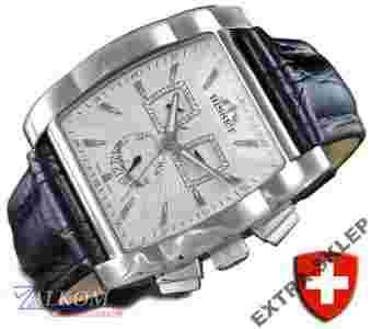 Oferowany model BISSET'a to śmiało można napisać kultowy chronograf marki - zegarek pożądany za każdym razem gdy trafia do oficjalnej dystrybucji. Model BS25X11 to odświeżona (delikatny facelifting oraz podniesienie parametrów technicznych) wersja zegarka oznaczonego wcześniej symbolem - BS25011 w branży zaś kojarzony jako "jedenastka Bisseta". Główne zalety modelu - to niesamowicie ekskluzywny i męski wygląd, oraz odrobina sportowego ducha. Zegarek posiada wbudowany stoper z funkcją międzyczasu, oraz wskazanie daty w okienku (dzień miesiąca) i mała dolna tarcza wskazującą dzień tygodnia! Wskazówka sekundowa czasu rzeczywistego znajduje się na prawej małej tarczy. Wskazówka centralna dla zwiększenia czytelności jest częścią funkcji CHRONO
