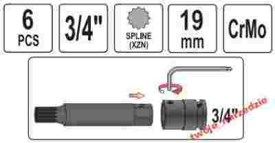 BITY SPLINE UDAROWE 3/4'' YATO 6cz. YT-1157