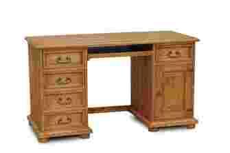 Biurko posiada wysuwaną półkę pod klawiaturę, po jednej ze stron cztery szuflady po drugiej szufladę oraz zamykaną szafkę.