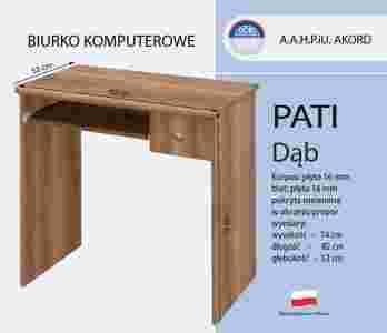 Biurko PATI wykonane z płyty laminowanej odpornej na ścieranie. Posiada wysuwaną półkę pod klawiaturę oraz szufladę (front płyta laminowana).